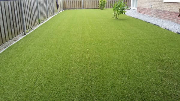 Deze prachtige tuin werd door ons aangelegd in Hoedekenskerke . Kunstgras , type Zeeland.
